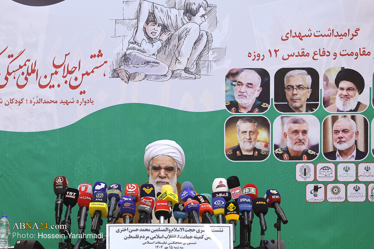 Kamfanin Dillancin Labaran ƙasa da ƙasa na na Ahlul Baiti (AS) – ABNA– ya habarto cewa:  An gudanar da taron manema labarai na kasa da kasa karo na takwas don nuna goyon baya ga yara da matasa na Palastinu a taron tunawa da shahid Muhammad Al-Durra a ranar Talata 7 ga watan Oktoban shekara ta 2025, tare da halartar Hujjatull Islam Muhammad Hasan Akhtari shugaban kwamitin tallafawa juyin juya halin Musulunci na al'ummar Palastinu a karkashin jagorancin juyin juya halin Musulunci a Majalisar Gudanarwa.